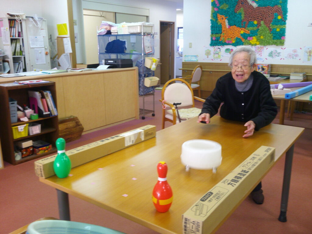 卓上ボーリング 2026-02-10 最終更新日時 : 2026-02-13 gumisawaen なかなか狙い通りの方向へ転がらず、「難しいね」と声が上がる場面もありましたが、ピンが倒れると「おー!」「やった!」と自然と歓声が湧き上がりました。 思い通りにいかない分、成功した時の喜びも大きく、笑顔あふれるレクリエーションとなりました。 Digital Camera