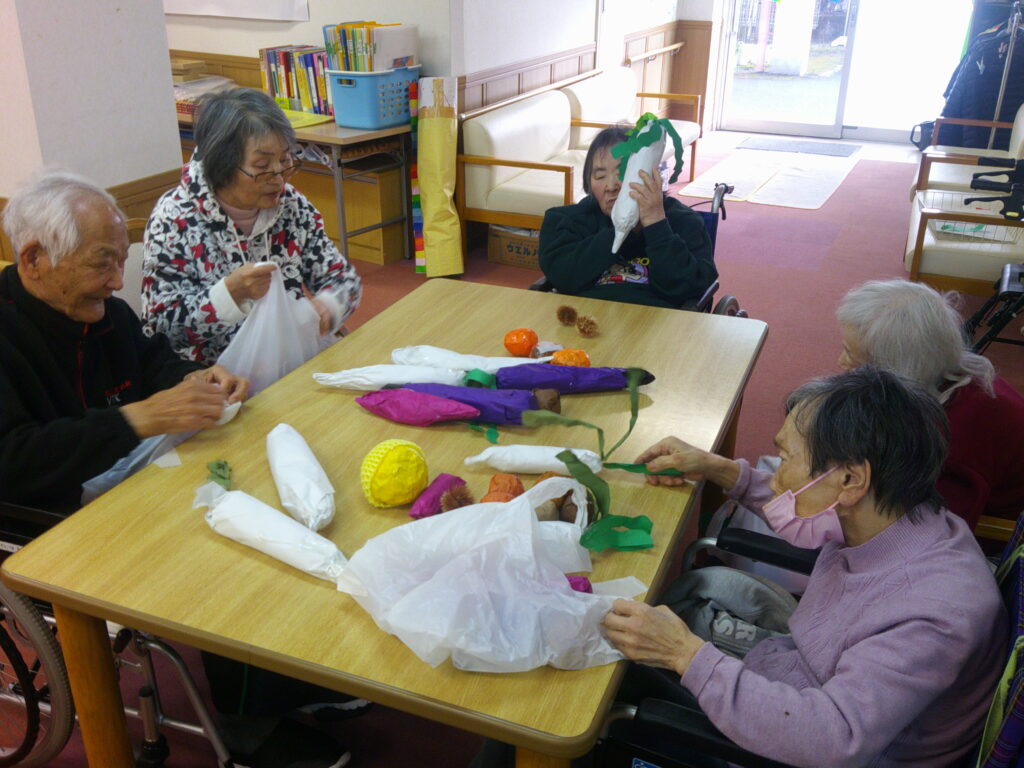 野菜収穫ゲーム 2026-02-23 最終更新日時 : 2026-02-24 gumisawaen 誰が1番多く野菜を袋の中に入れられるかを競いました。 長い物や丸い物と大きさや形が違うので入れるのが難しかったです。 皆さん野菜の名前を言いながらたくさん袋に入れられました。 Digital Camera