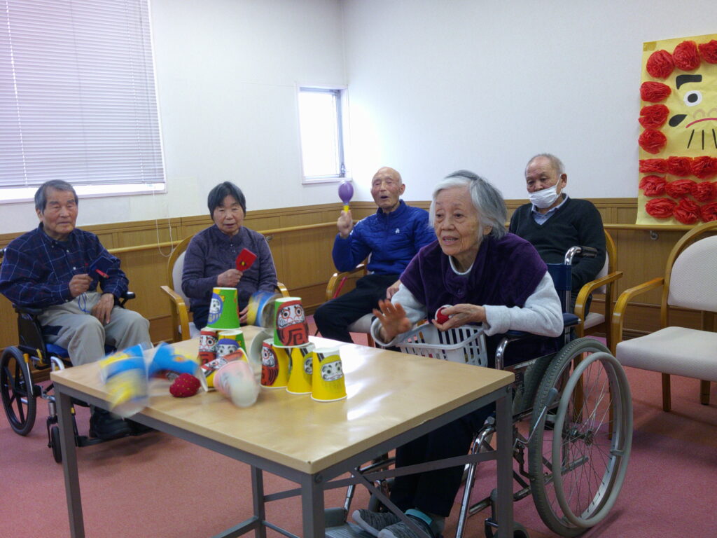 紙コップをピラミッド状に積み上げ、ボールを投げて崩すゲームを行いました。皆さま真剣な表情で狙いを定めながら参加され、コップが倒れるたびに歓声が上がり、笑顔あふれる時間となりました。