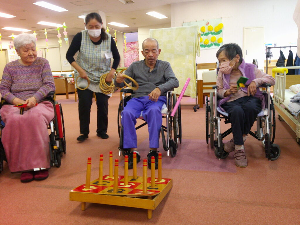 輪投げ 2026-03-23 最終更新日時 : 2026-03-25 gumisawaen 今日のレクリエーションは、輪投げを行いました。皆さん、真剣に的を狙い輪が入るたびに「入った!」という声があちこちから聞こえ、終始にぎやかな雰囲気でした。皆さんの笑顔がたくさん見られた楽しい時間になりました。 Digital Camera