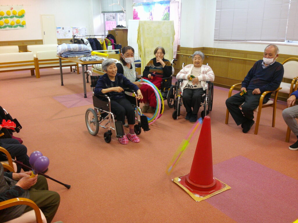 大きな輪投げ 2026-03-16 最終更新日時 : 2026-03-30 gumisawaen 大きな輪を使用した輪投げを行いました。普段よりも大きな輪を用いることで難易度が増す一方、参加者の皆様は的をよく見定めながら、両手で一生懸命に投げておられました。 Digital Camera