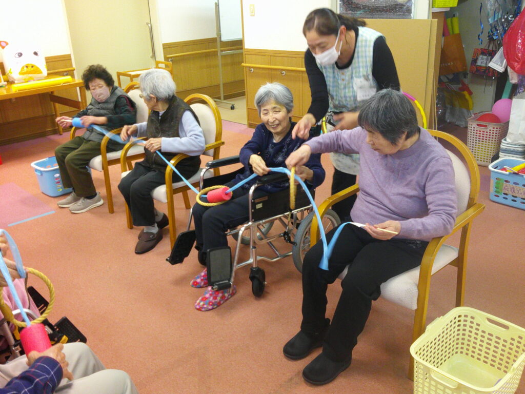 他利用者様と協力しあい身体を動かしつつコミュニケーションを取ることができ、皆様楽しそうにされていました。